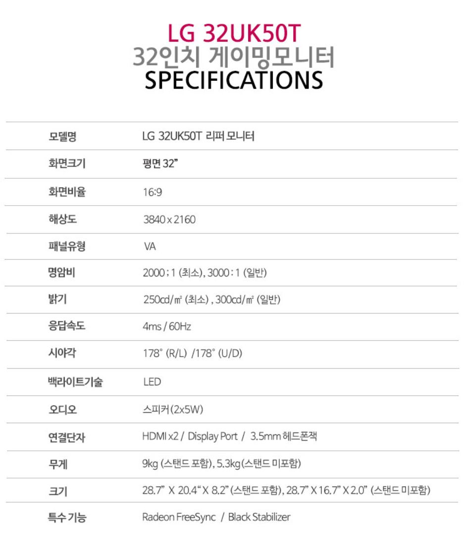 [ LG 4K 모니터 - 32UK50T 상세 스펙 ]