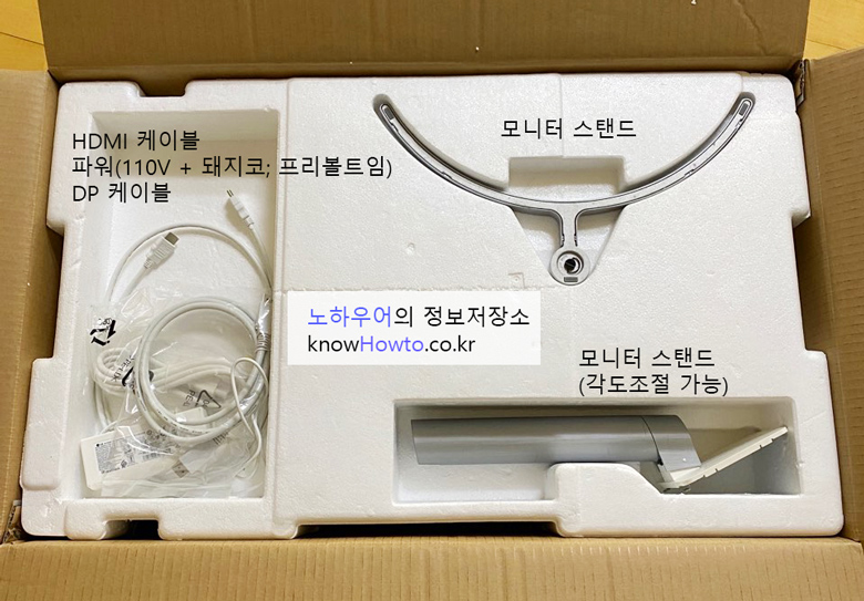 위쪽 상자를 들어내면 위와 같이 박스 하단부에 모니터가 잘 포장되어서 들어 있습니다.