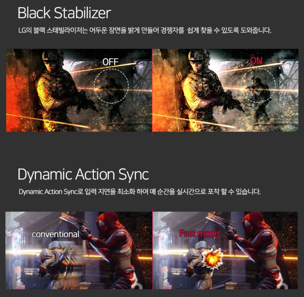 요새 모니터들은 대부분 게임을 위한 기술들을 최소 2-3개 이상 제공합니다.