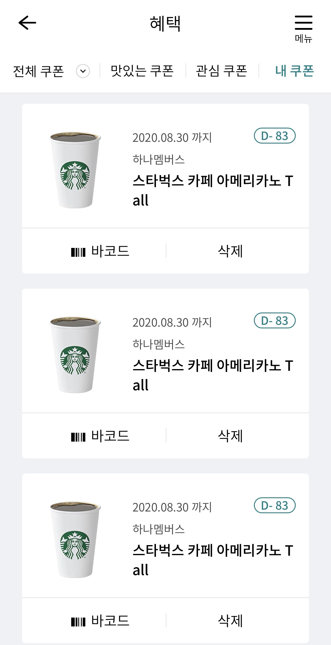 하나카드에서 신규 카드고객을 위해 5월부터 꾸준히 스타벅스 20잔 무료 이벤트를 하고 있어요.
