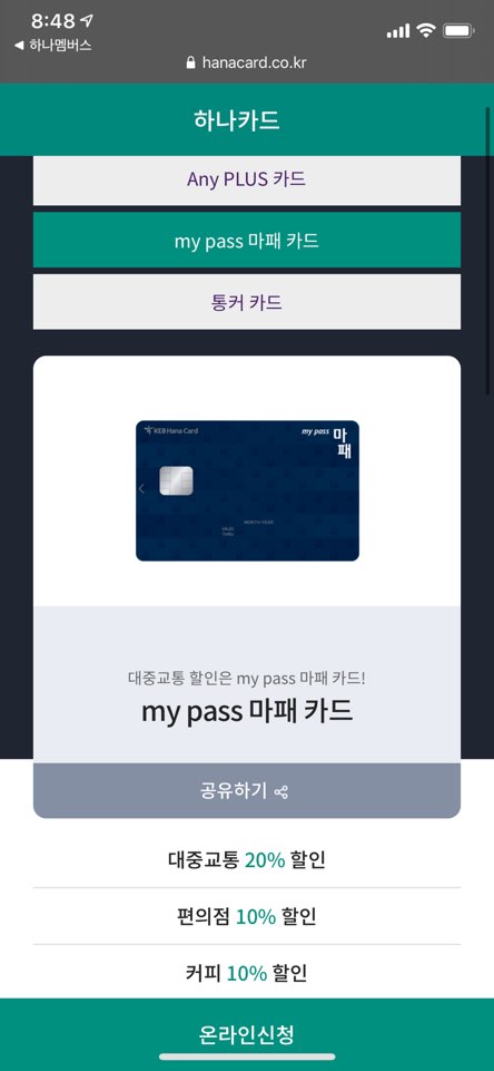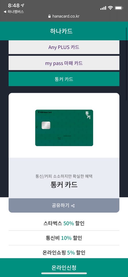 전 하나카드 혜택이 맘에들어서 계속 쓰게될 것 같아요.