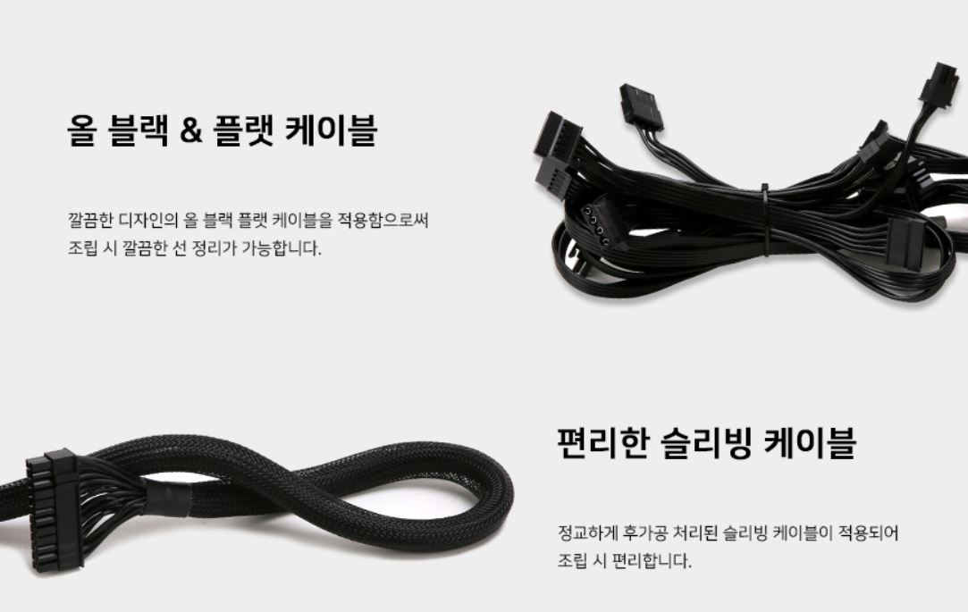 메인보드 파워케이블은 슬리빙 처리가 되어있고 올블랙이라