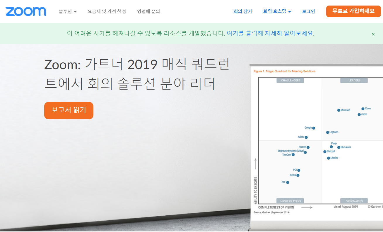 아래는 윈도우10 데스크탑에서 줌 홈페이지에 접속한 화면입니다.