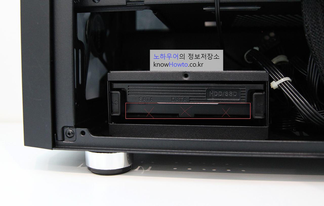 위와 같이 조립할 경우 HDD에 케이블을 연결할 수 없습니다.