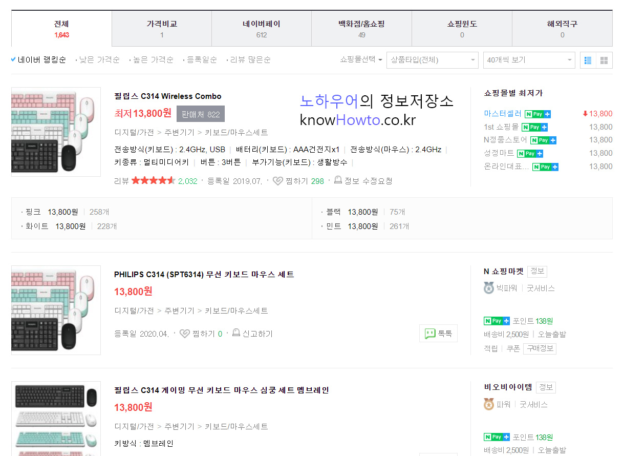 무선 키보드 마우스 콤보가 13800원 + 2500(배송비) = 16,300원