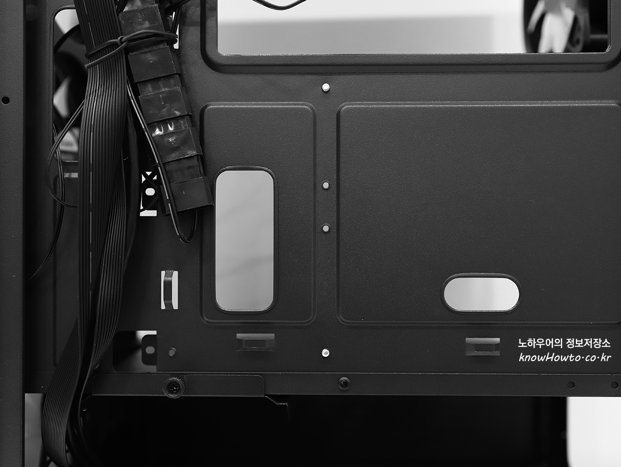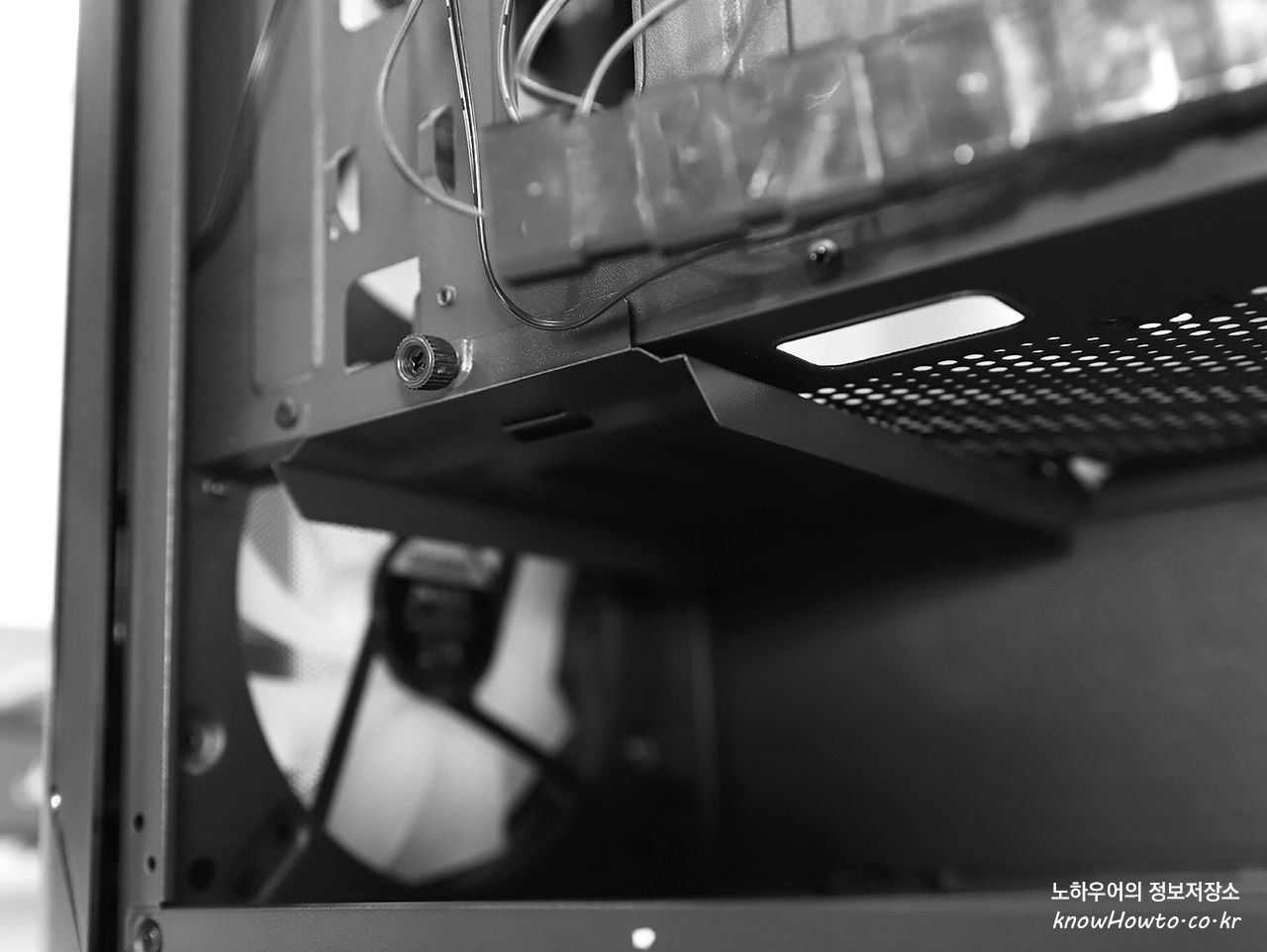 그리고 특이한 점은 많은 케이스들이 하드디스크 장착 베이가 바닥에 붙어있는데