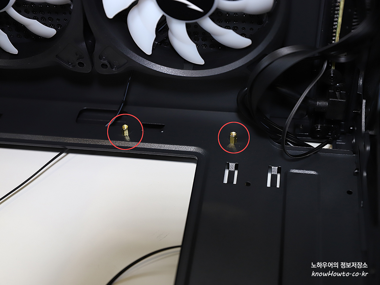 모두 RGB팬이라서 팬 색상이 모두 흰색입니다. (위 사진은 케이스 상단과 후면 팬)