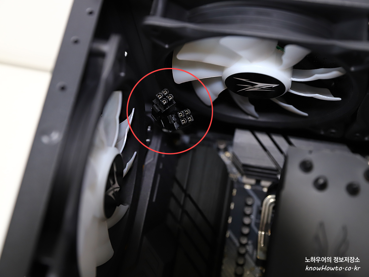 따라서, 메인보드를 케이스에 나사로 체결하기 전에 보드 전원을 꺼내어 메인보드에 꽂으시고, 그 뒤 메인보드를 케이스와 완전히 체결하시는 것을 추천드립니다.
