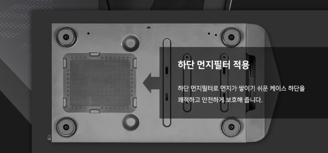 상단과 하단의 먼지필터는 먼지유입을 막아주고