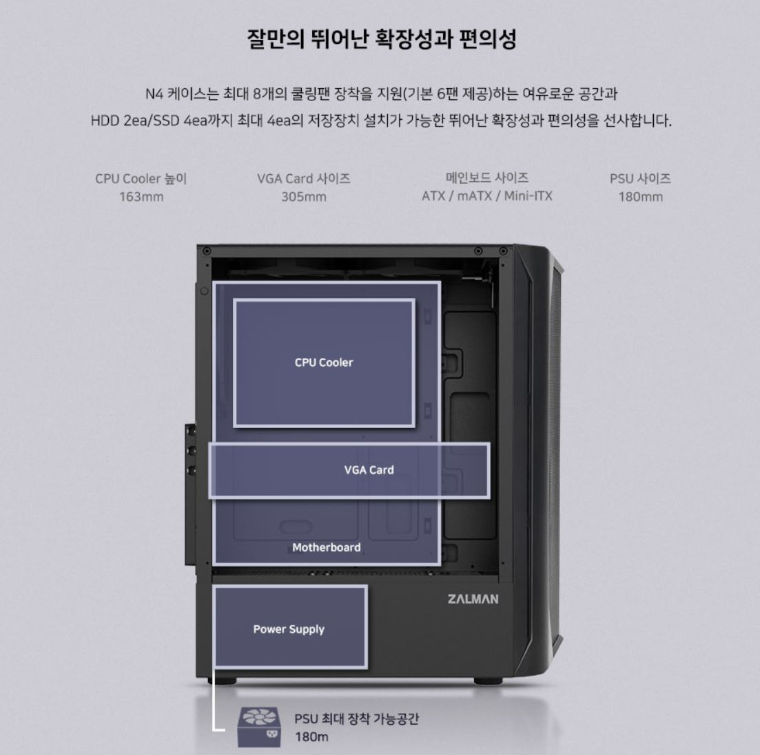 잘만 N4 케이스는 미들타워 케이스입니다.