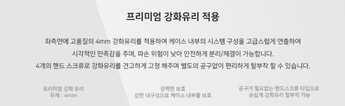 - 깔끔한 매트 블랙, 강화유리측면, 군더더기없는 디자인