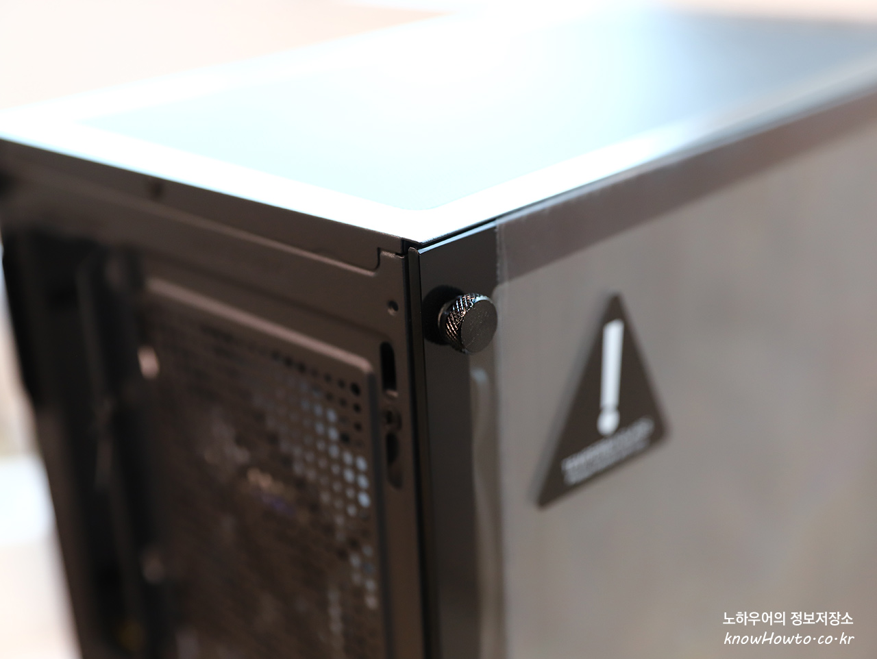 잘만 N4 i40 케이스의 경우 강화유리를 나사로 간단히 조이게 되어져 있습니다. (아래 사진)