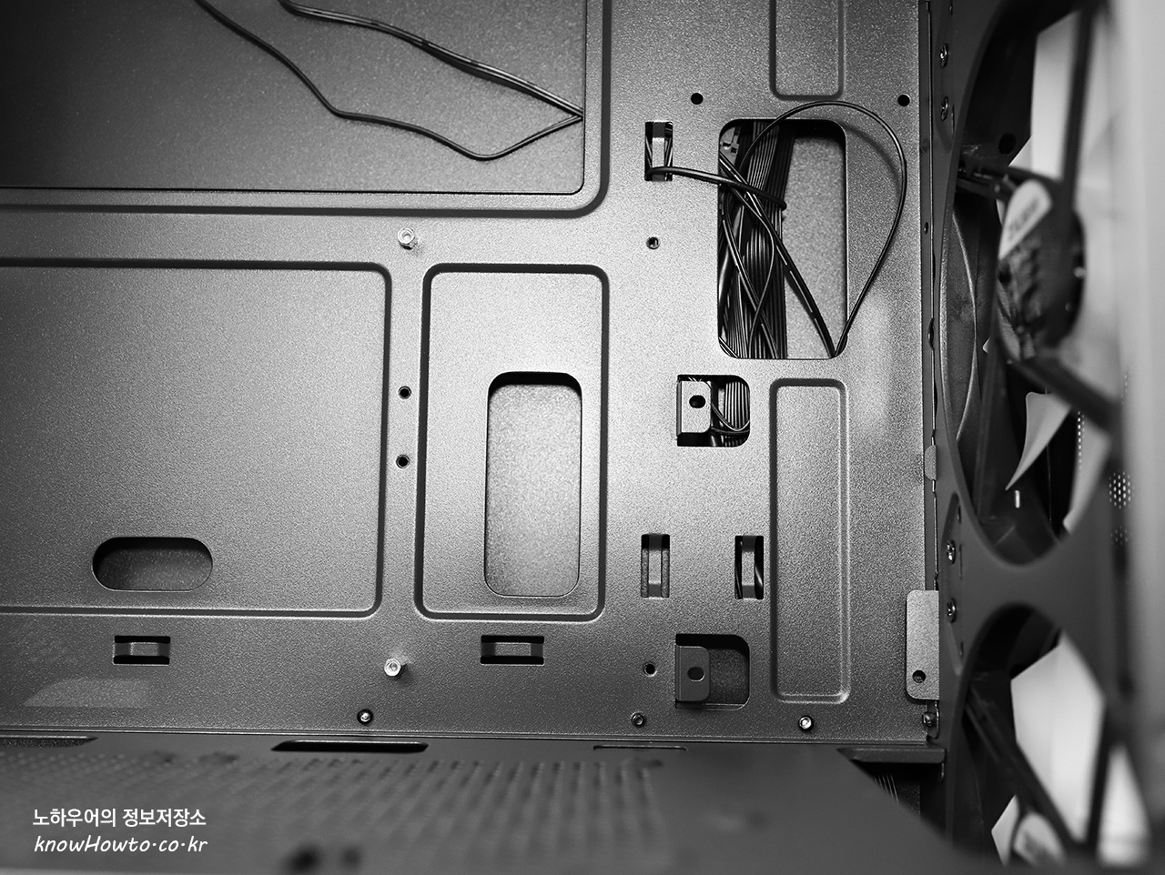 케이스가 블랙이고 여기 저기 선 정리 홀이 많아서 쉽고 깔끔한 조립이 가능합니다.