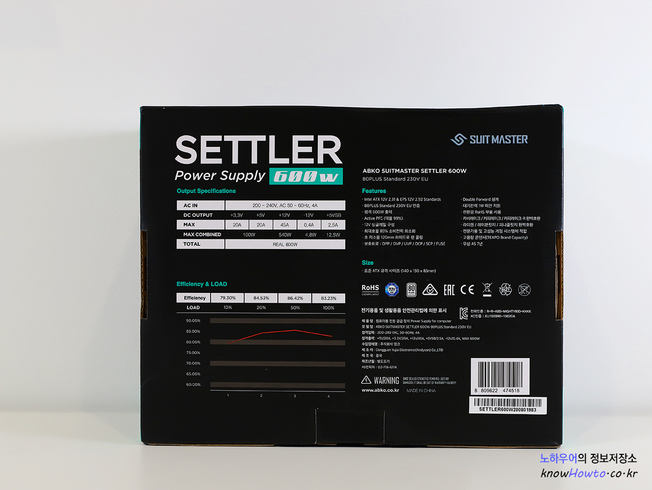 [ ABKO SUITMASTER SETTLER 600W 80plus Standard 230V EU 파워 개봉기, 박스외관 ]