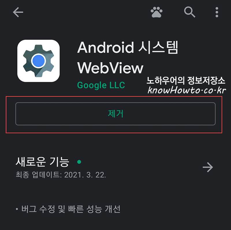 2. Play store상단 검색창에서 Android 시스템 WebView를 검색합니다.