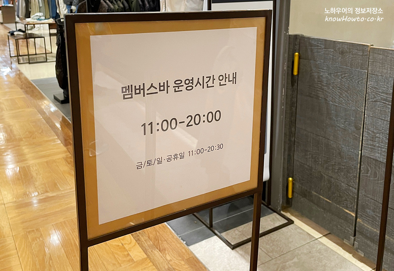 신세계 경기점 멤버스바 운영시간은 11am ~ 8pm 입니다.