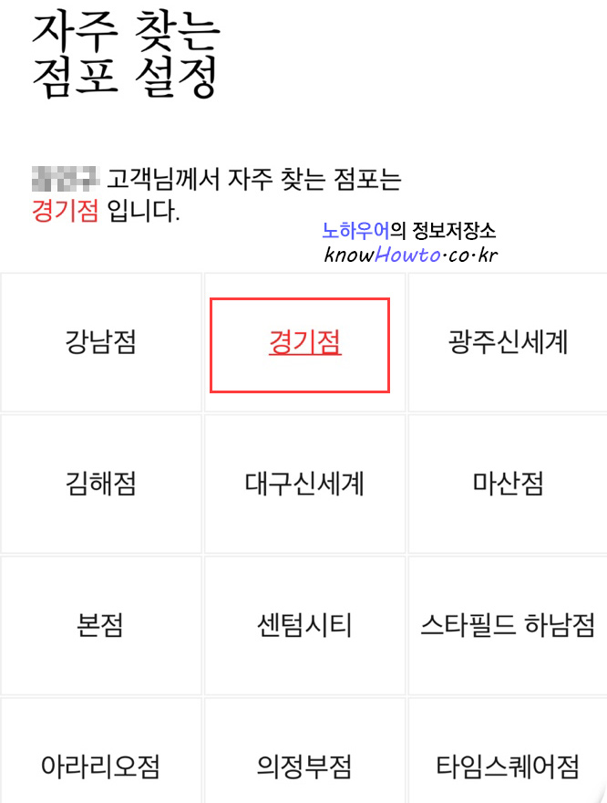 저는 강남점보다 경기점이 가까워서 경기점으로 설정을 해두었습니다.