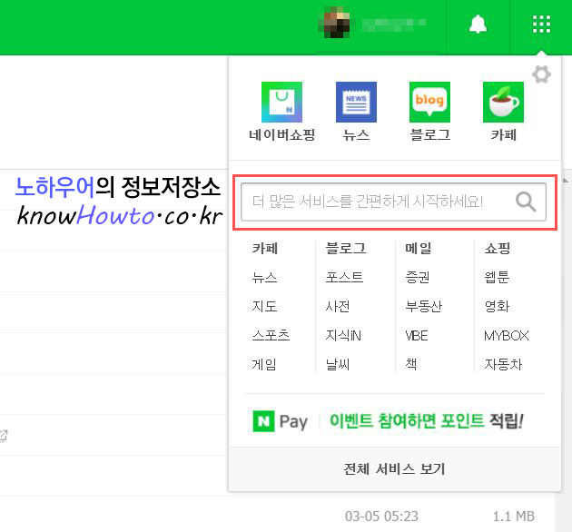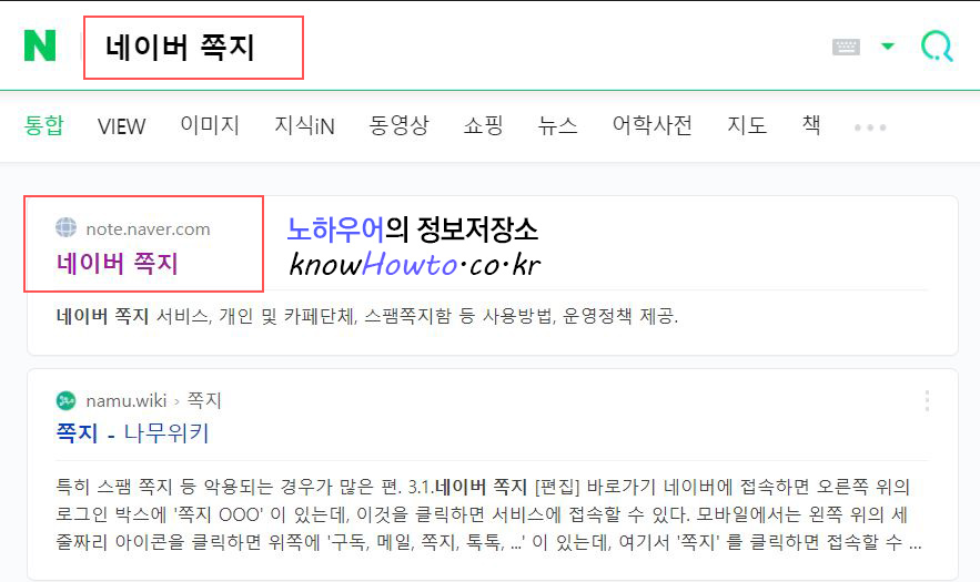 위와 같이 네이버 검색창에서 '네이버 쪽지'라고 입력하면
