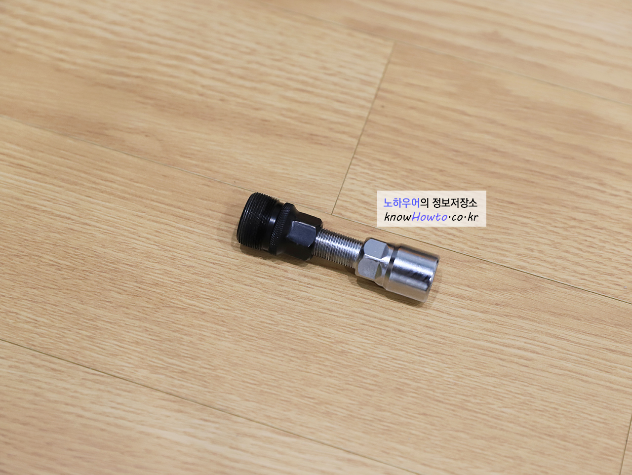 그 다음 위 사진의 뒤쪽 은색부분을 몽키스패너로 잡고 조여줍니다.
