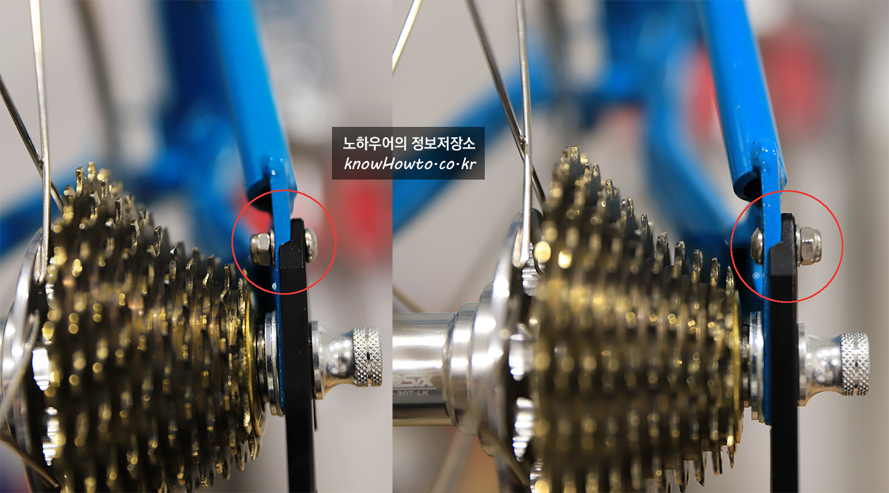 제 경우 처음에 좌측과 같이 장착했는데 체인을 걸어보니 10단에서 볼트와 간섭이 있었습니다.