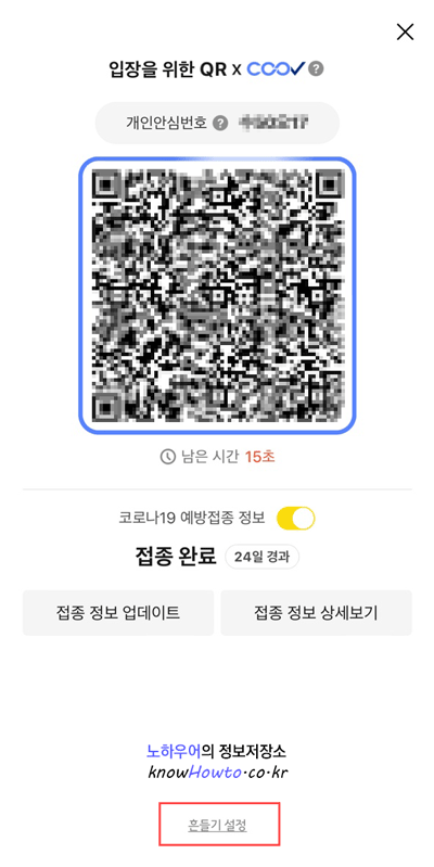 7. 아래와 같은 화면이 뜨면 상단의 '흔들기 설정'을 켜줍니다.