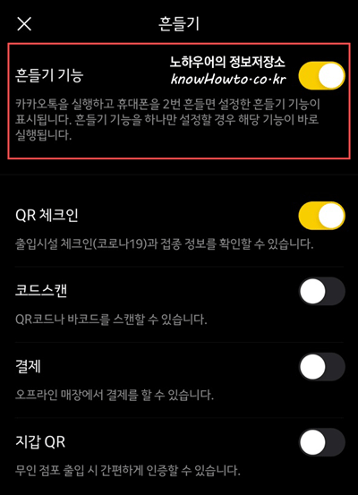 그럼 카카오톡이 실행된 상태에서 휴대폰을 흔들기만 하면 1초만에 QR체크인이 실행됩니다!