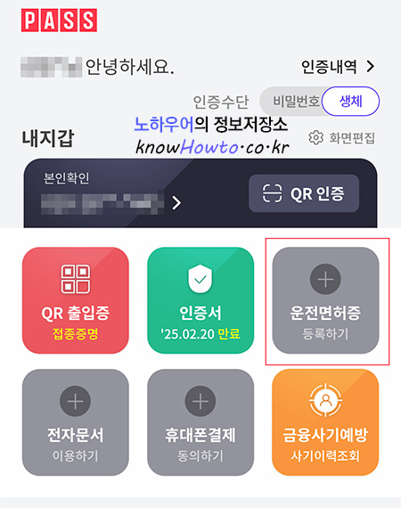 5. 하단의 '운전면허증 등록하기'를 클릭합니다.