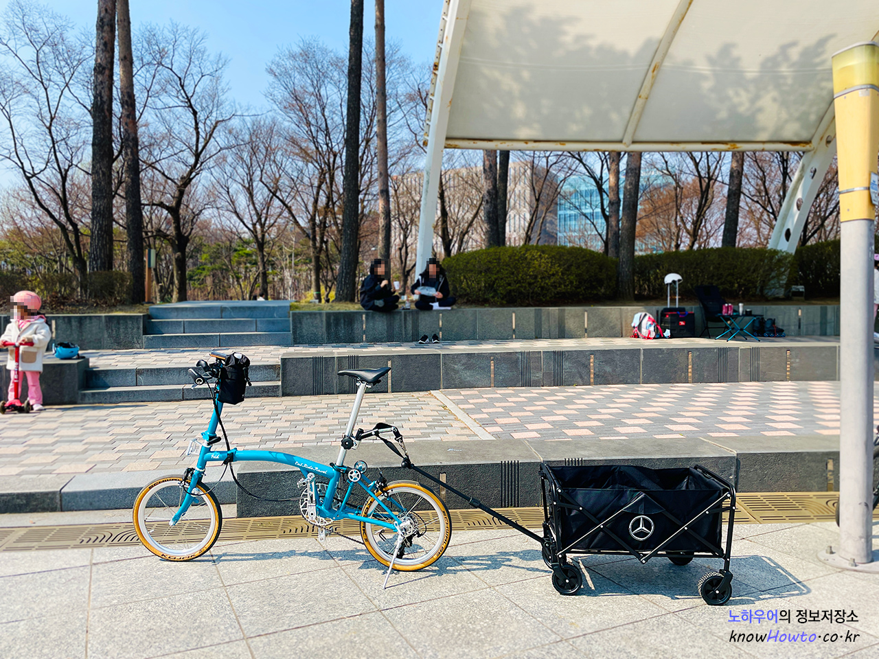 이 날 처음으로 파이크에 캠핑카트를 연결하고 공원마실을 다녀왔습니다~