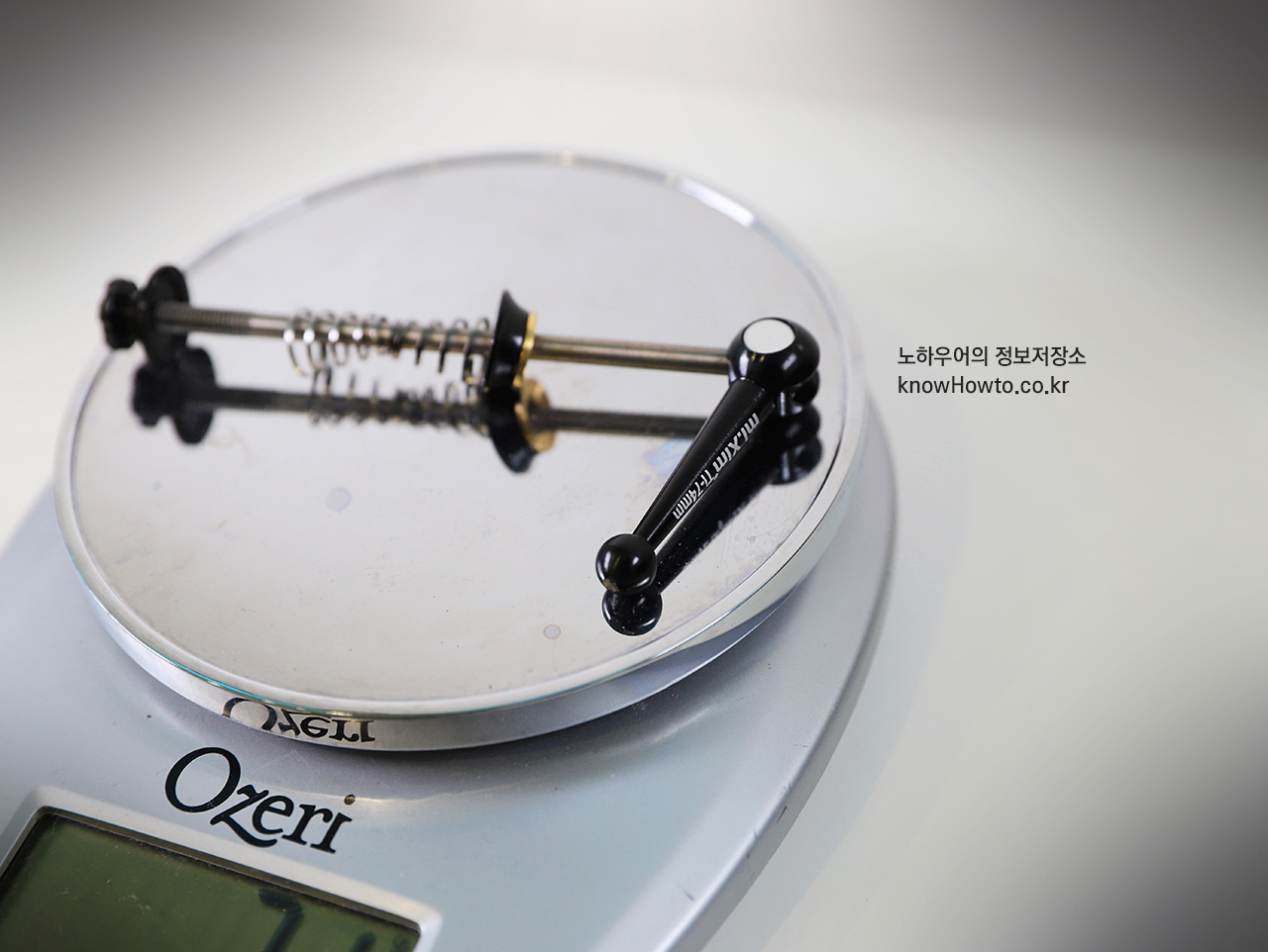 제가 가지고 있는 알루미늄 QR 레버의 무게를 재보니 43g 입니다.