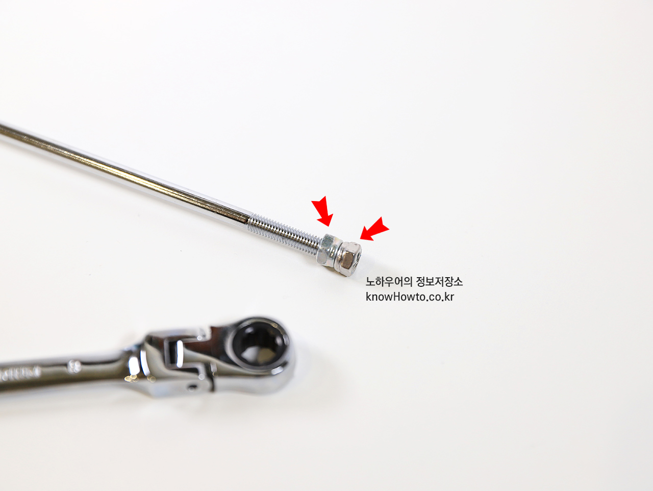 바깥쪽 너트가 안쪽 너트가 밀리지 않게 잡아주는 역할을 해야하므로 2개 너트가 꽉 물리도록 체결합니다.