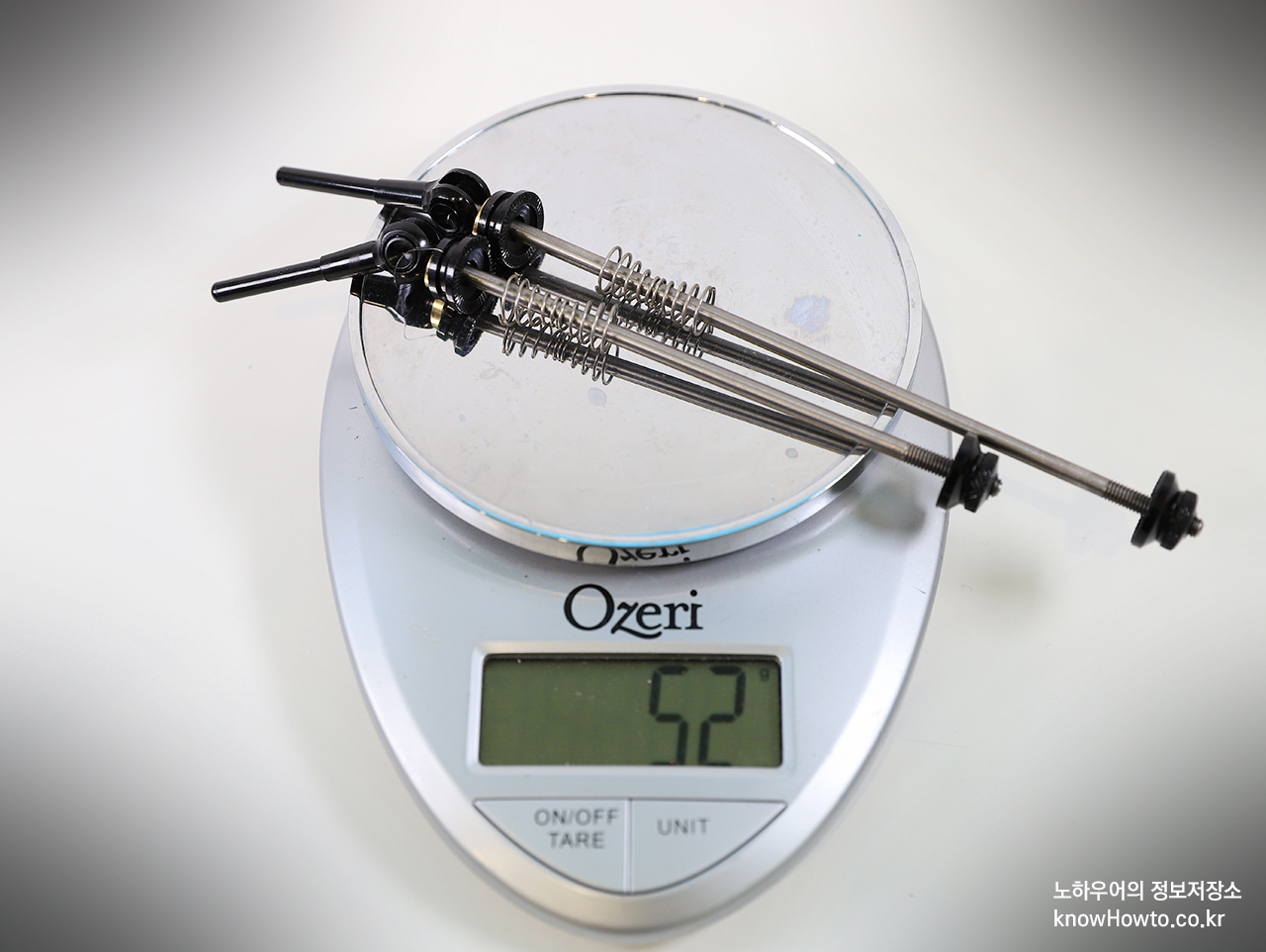 순정 QR레버는 앞뒤 1쌍에 113g이며, 티탄QR은 앞뒤 한쌍에 52g 입니다.