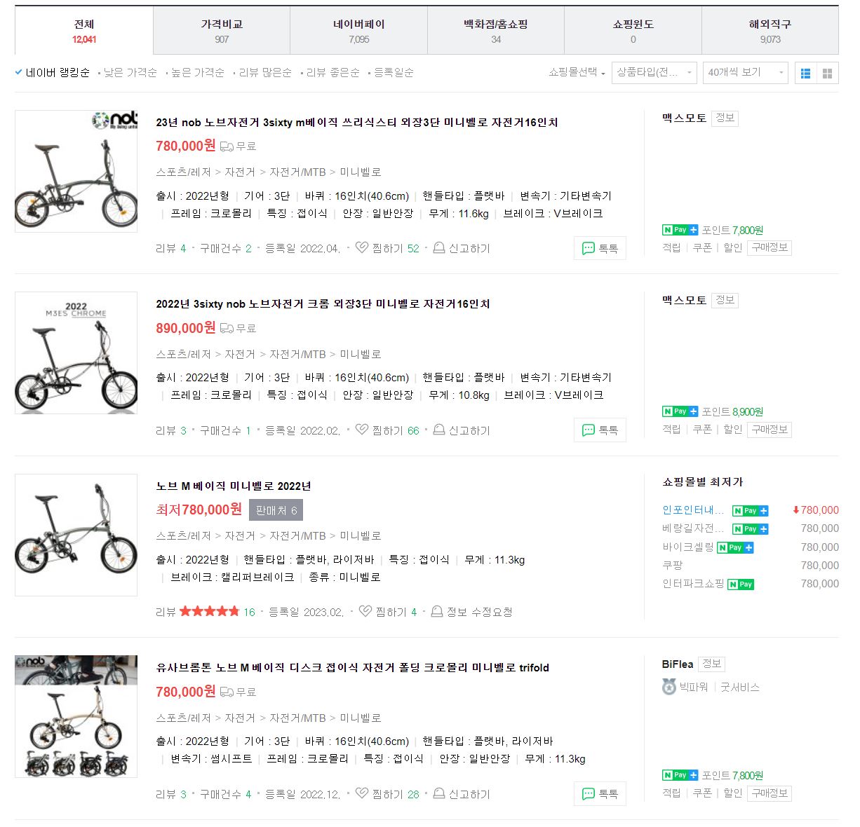 요새는 Nob MD7 모델을 밀고있는 것 같은데, 78만원에 외장7단 입니다.