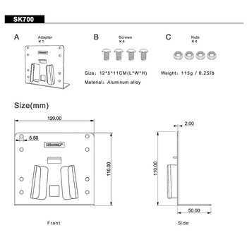 이 캐리어블럭 아답터의 사이즈는 아래와 같습니다.