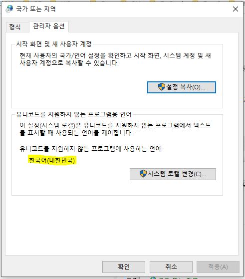 3. 시스템로캘 이 '한국어'가 아닐 경우 한국어 로 변경