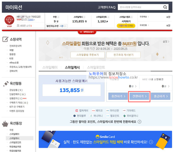 이렇게 하면 스마일캐시로 변환되어 옥션, 지마켓, G9 등에서 현금처럼 사용이 가능해집니다!