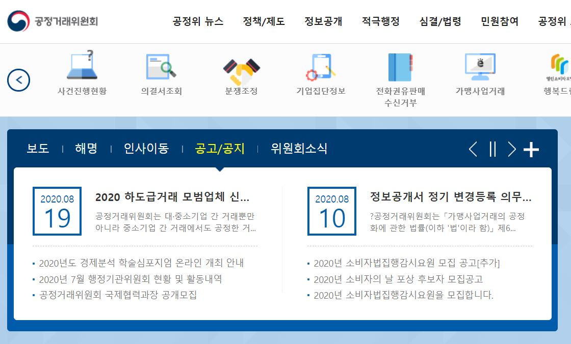 1. 공정거래위원회 홈페이지(www.ftc.go.kr)로 들어갑니다.
