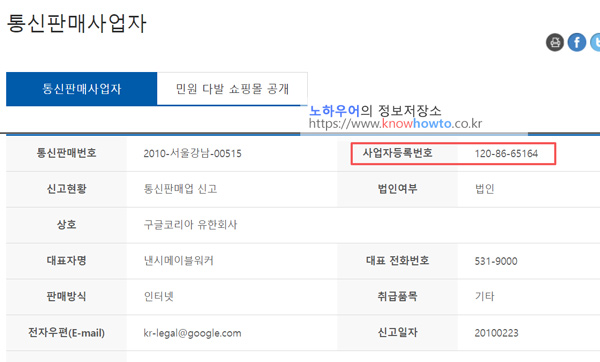 구글코리아의 경우 통신판매업자로 등록되어 있기 때문에 여기로 들어가야 하는 것이고