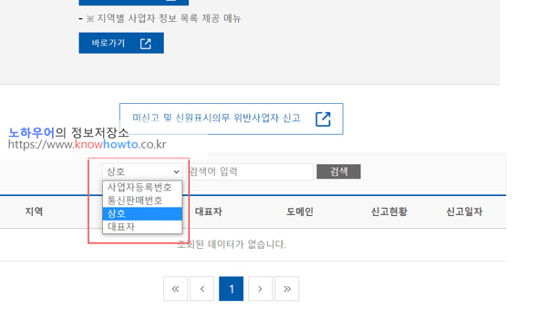 4. 위와 같은 화면이 보이면 검색 옵션 드롭다운 메뉴에서 '상호'를 선택합니다.