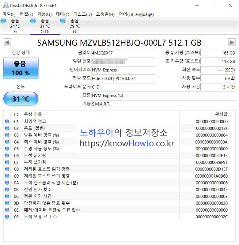 | 삼성 PM981a 512GB SSD 스펙 www.knowHowto.co.kr |