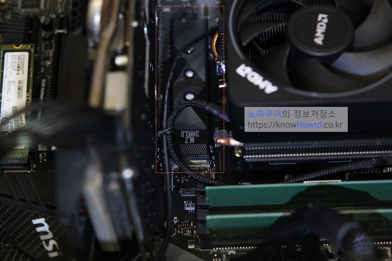 좌측에 보시면 M.2 2번슬롯이 있고 다른 NVMe 타입의 SSD가 설치되어 있는 것도 보실 수 있습니다.