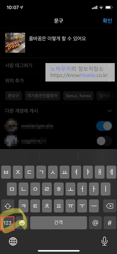 인스타 줄바꾸는법을 위한 엔터키를 이렇게 왜 숨겨놨는지.. 아무도 모릅니다;;;