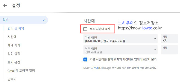 [ 구글캘린더 보조시간대 설정 방법 ]