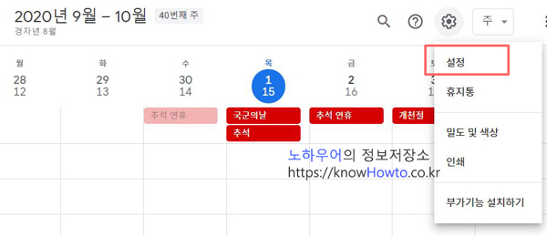 1. 캘린더 우측 상단, '설정' 아이콘을 클릭합니다.