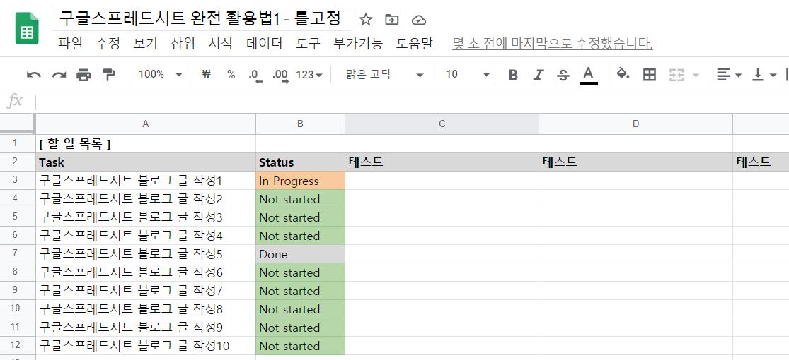 구글시트에서 기본 중 하나인 구글스프레드시트 틀고정 방법과