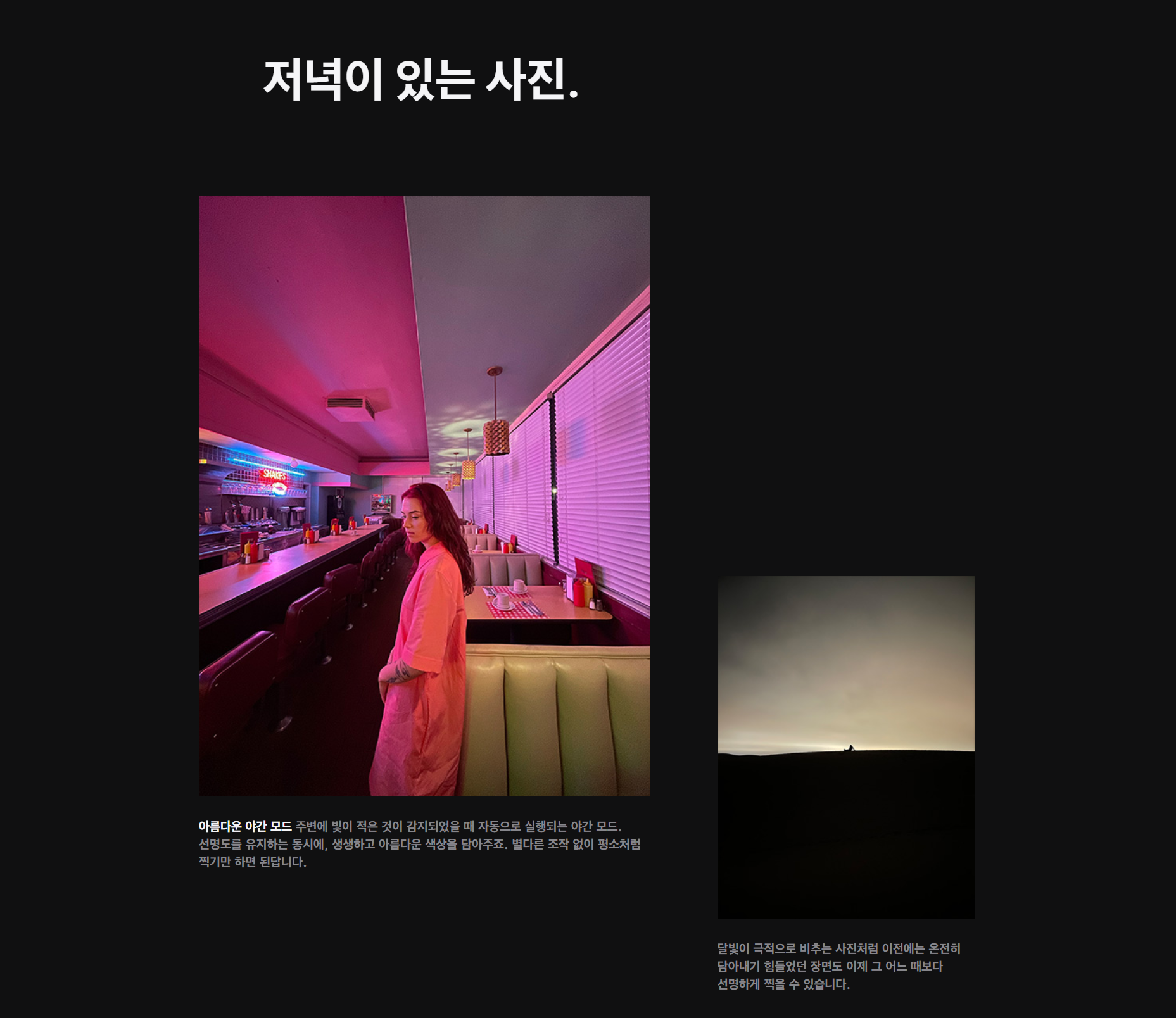 아이폰12 전모델의 후면카메라 조리개값은 F1.6으로 고성능 DSLR급의 화면밝기를 제공합니다.