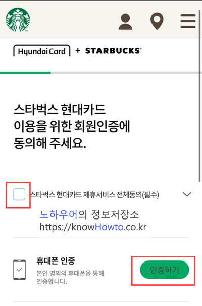 3. 본인인증이 완료되면 그 다음으로 스벅 회원인증을 해야 합니다.