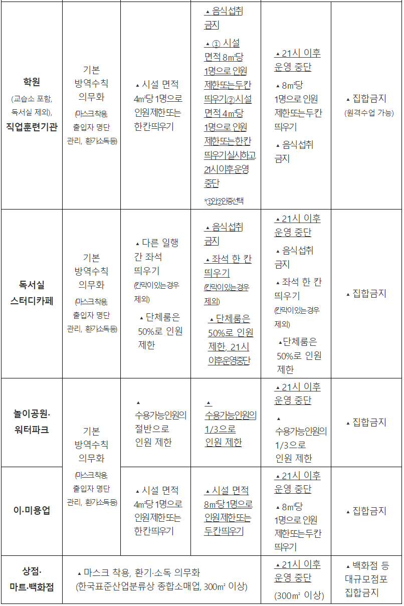 [ 기존 거리두기 3단계 수칙과 달라진 점 ]