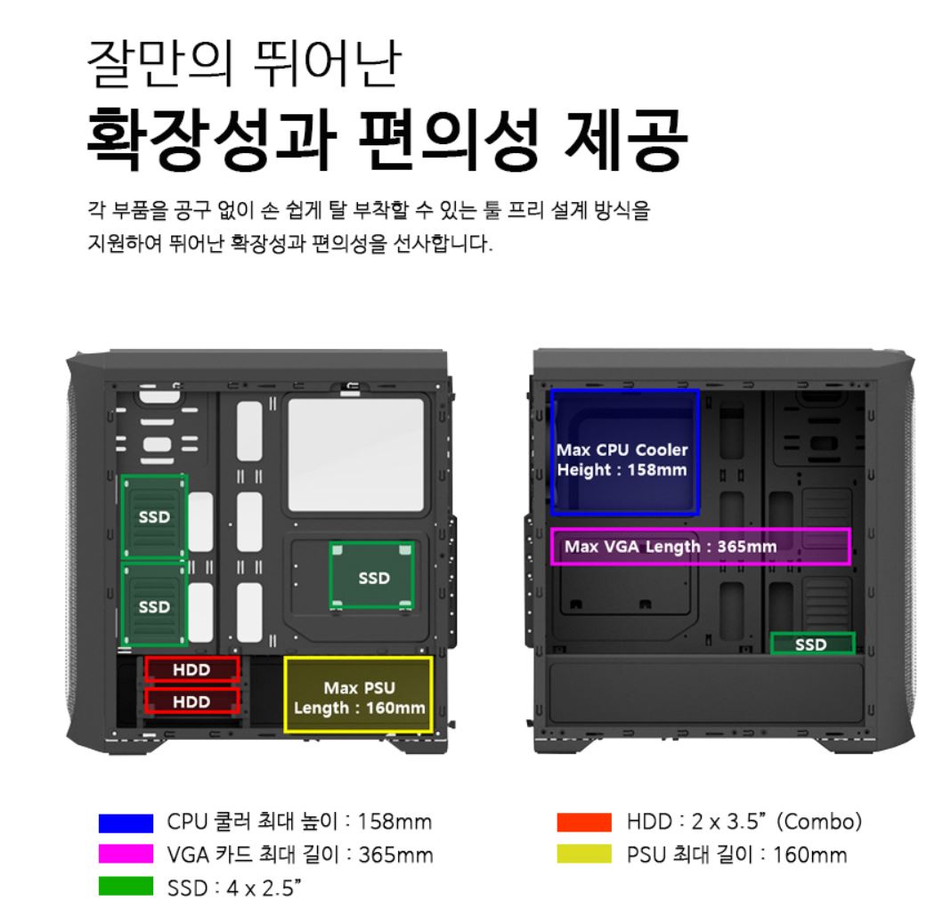 최대 158mm 높이의 CPU쿨러 사용이 가능하고