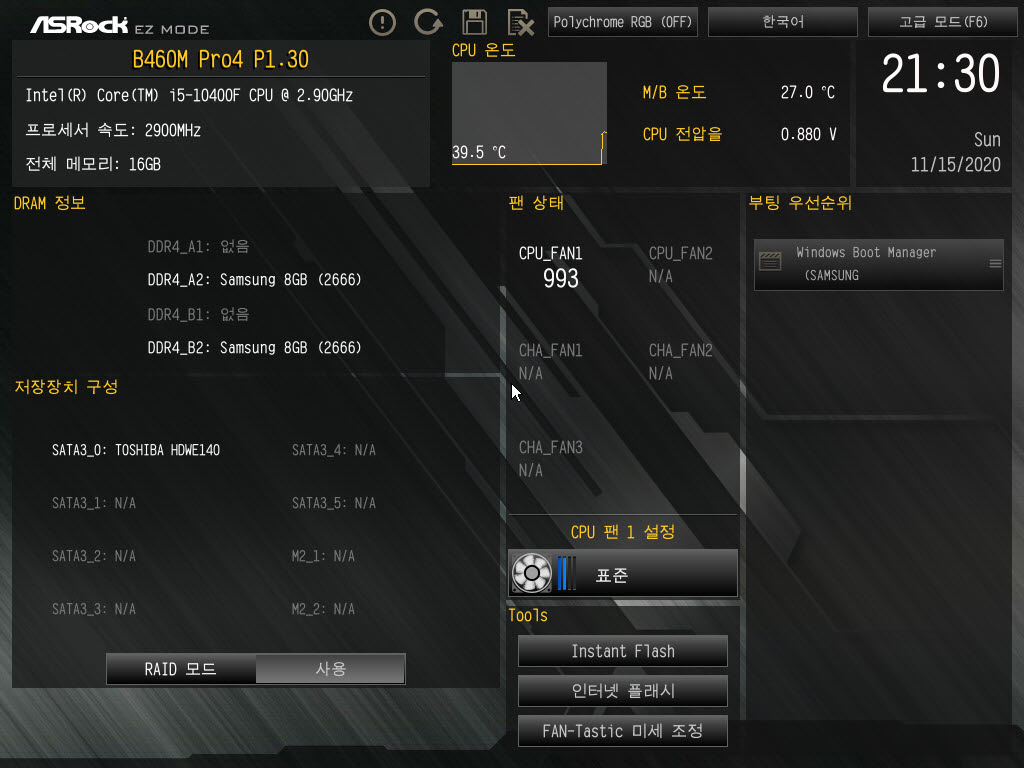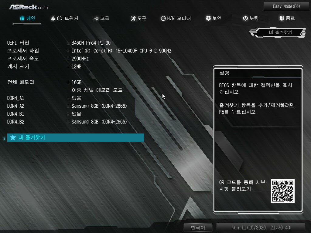 오늘은 ASRock B460M Pro4 바이오스 설정 화면에 대해 알아보겠습니다.