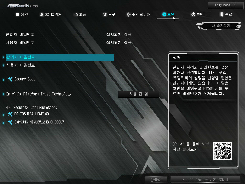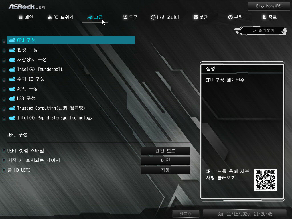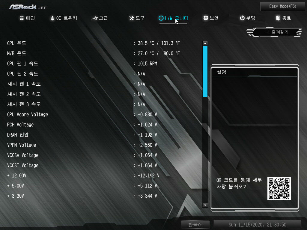 아래 제가 캡쳐한 ASRock 바이오스 설정 화면들을 보너스로 첨부드립니다 :)